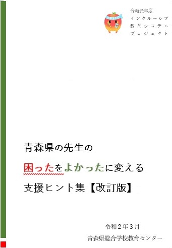 平成29年度に作成した小冊子『青森県の先生の困ったをよかったに変える支援ヒント集』の改訂版です。今回の改訂版では、新たに5つの事例とインクルーシブ教育システムについてのコラムを盛り込みました。 |
