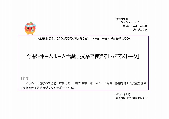| 研究テーマ | 児童生徒が、うきうきワクワクできる学級(ホームルーム)・居場所づくり |
